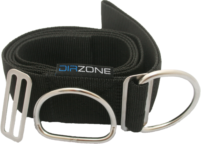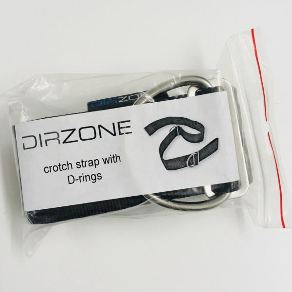Dirzone Schrittgurt 50mm mit einem fest vernähten Edelstahl D-Ring und einem losen D-Ring plus Stopper.