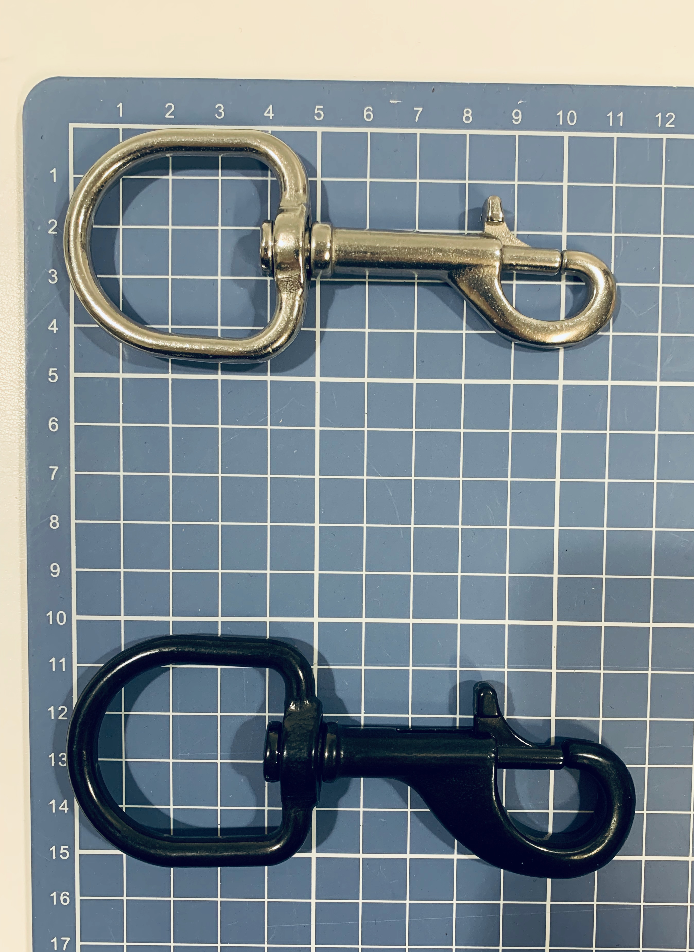 Zu jedem Karabiner gibt es ca. 0,5 cm schwarze Caveline.