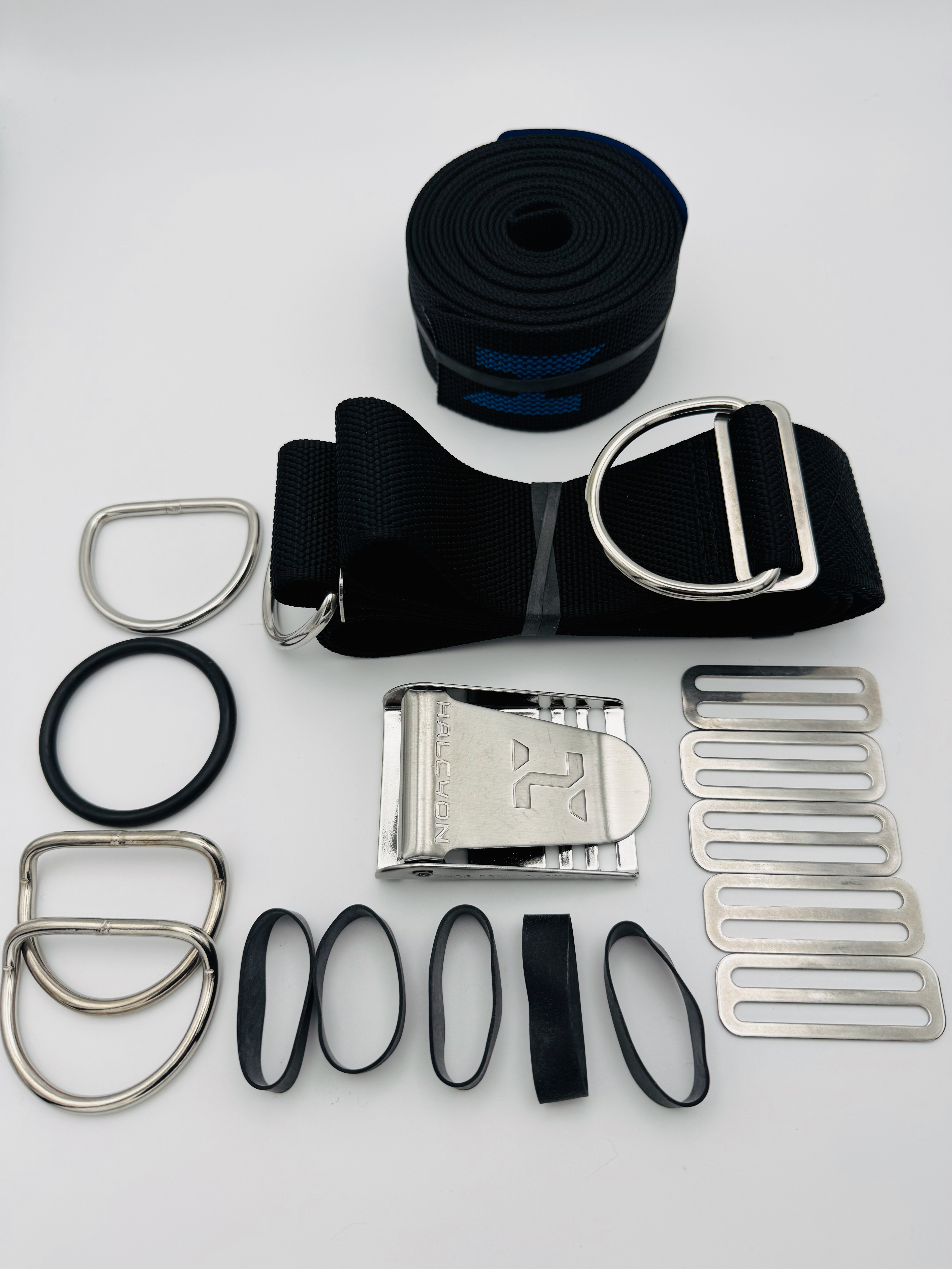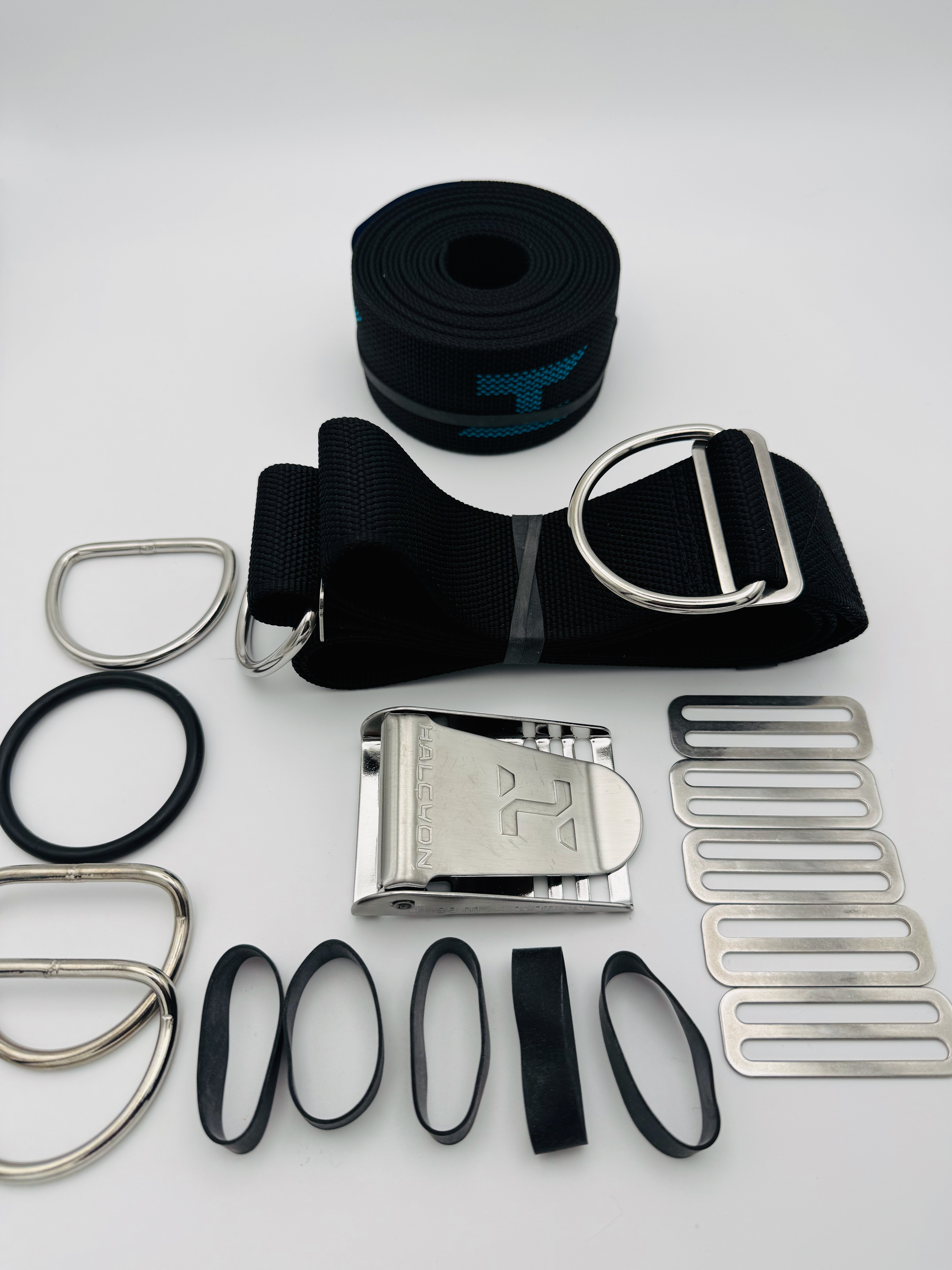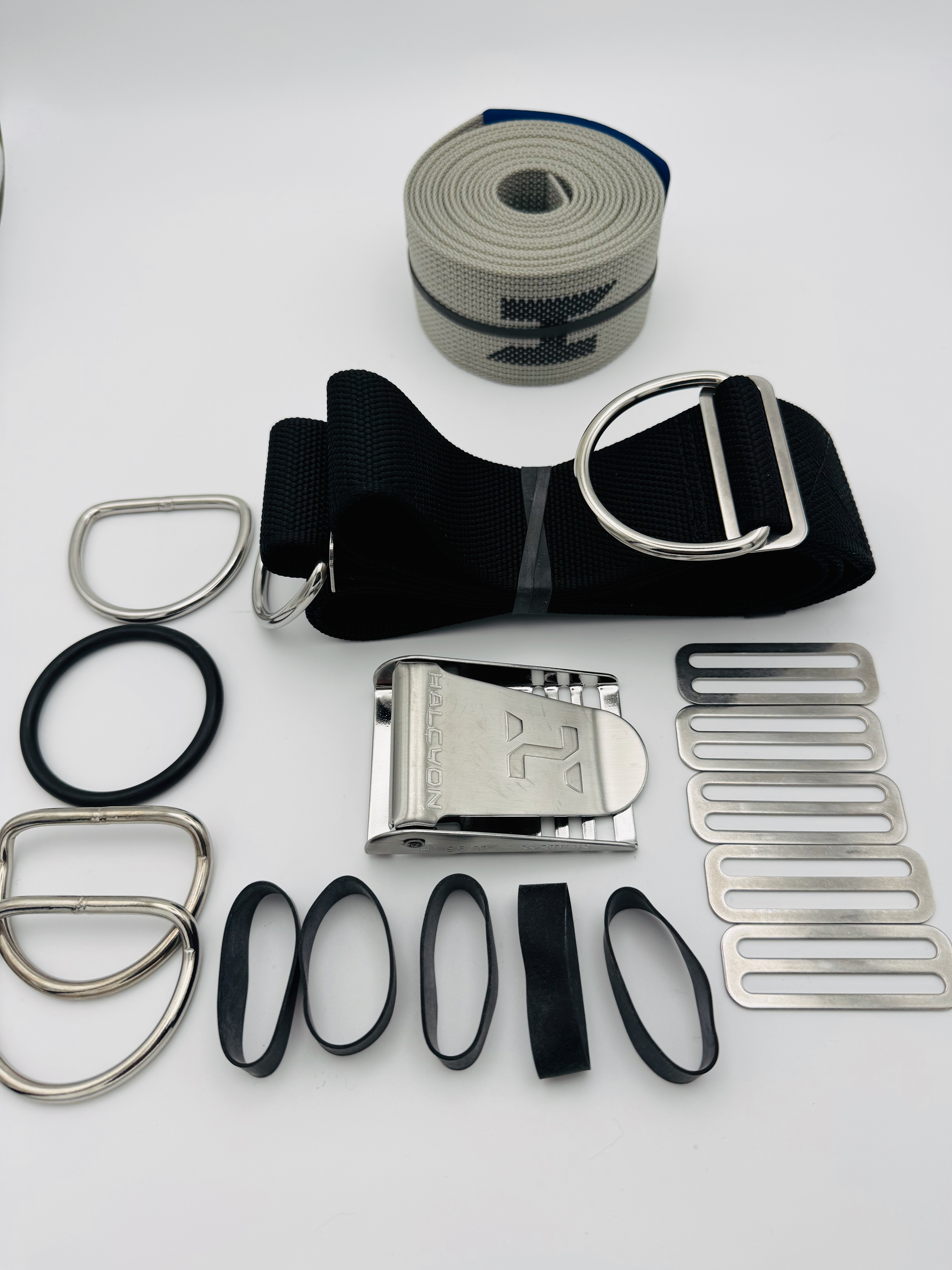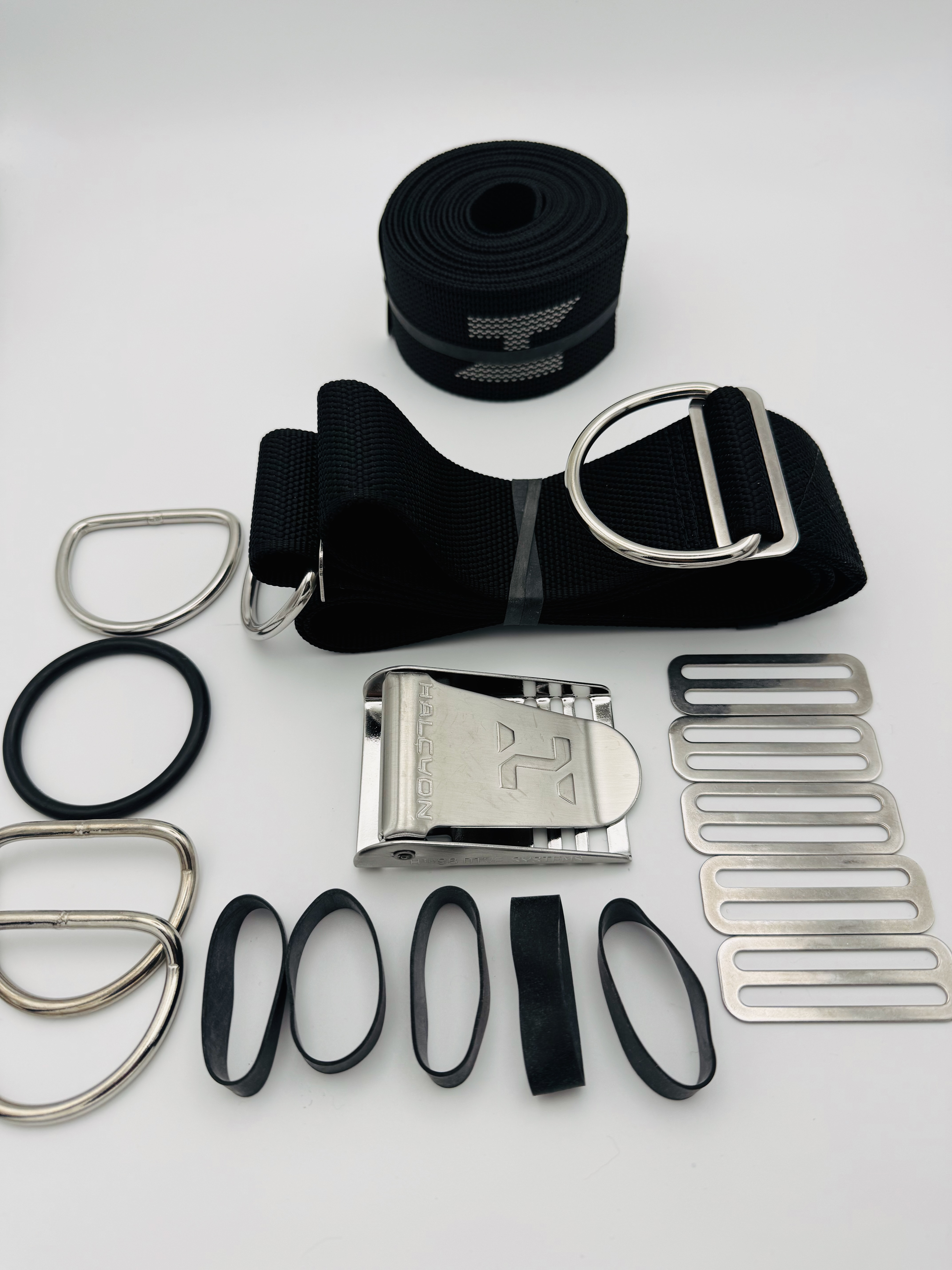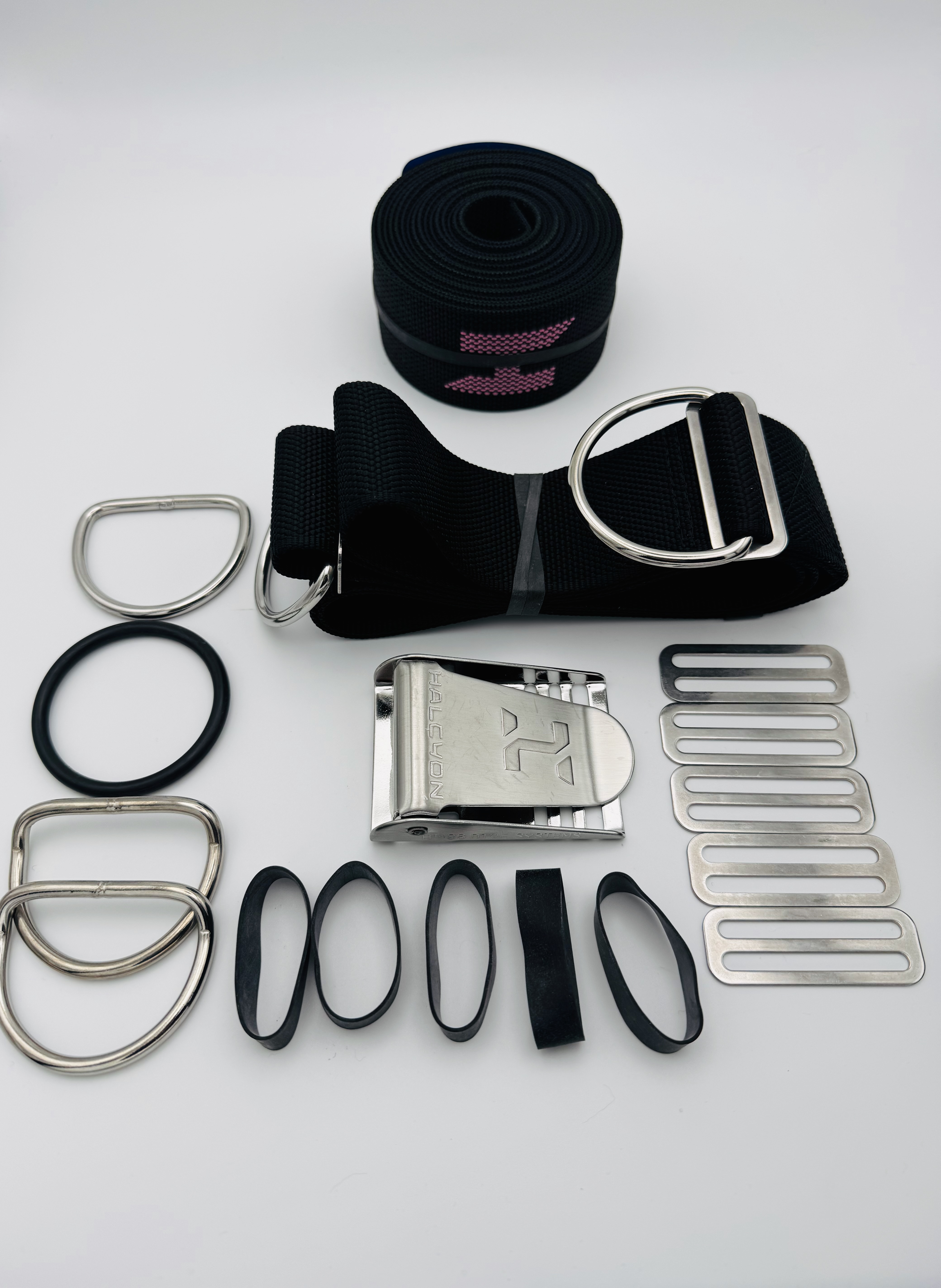 Halcyon Harness Komplett Set mit neues H Logo in 4 Farben und 3 Längen wählbar1 x "H" Gurtband für die Backplate (Farbwahl möglich)1 x Schrittgurt 1 x Gurtschnalle1 x großer O-Ring für Intflatorschlauch1 x glatter D-Ring2 x gekröpfte D-Ringe5 x Dreistege5 x HarnessgummisFolgende Farben zur Auswahl:"H" in blau ( Standard) Gurtband"H" in rosa'H" in weiß"H" in rotLängen: - Small 10' ( ca. 3,05 m länge keine Metallöse) - Standard 12' ( ca. 3,65 m länge mit Metallöse in der Mitte) - Long 14' ( ca. 4,25 m länge mit Metallöse in der Mitte)Wir haben noch ein Restbestand an alten Logo Gurtband / Webbing - nur so lange der Vorrat reicht