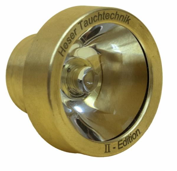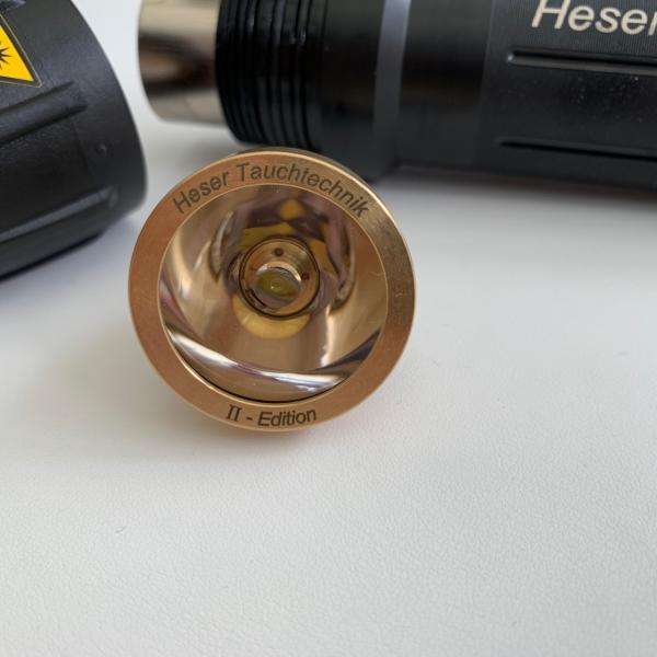 Second Edition: Die Ausführung "II. Edition" hat einen Lichtstrom im Bereich von min 300 lm (Standard) bzw. 200lm (kurze Version). Der LED-Kopf ist auch bis 20bar druckdicht. Dadurch erhöht sich die Sicherheit erheblich, da auch bei gefluteter Lampe der Lampenkopf sicher weiter funktioniert.