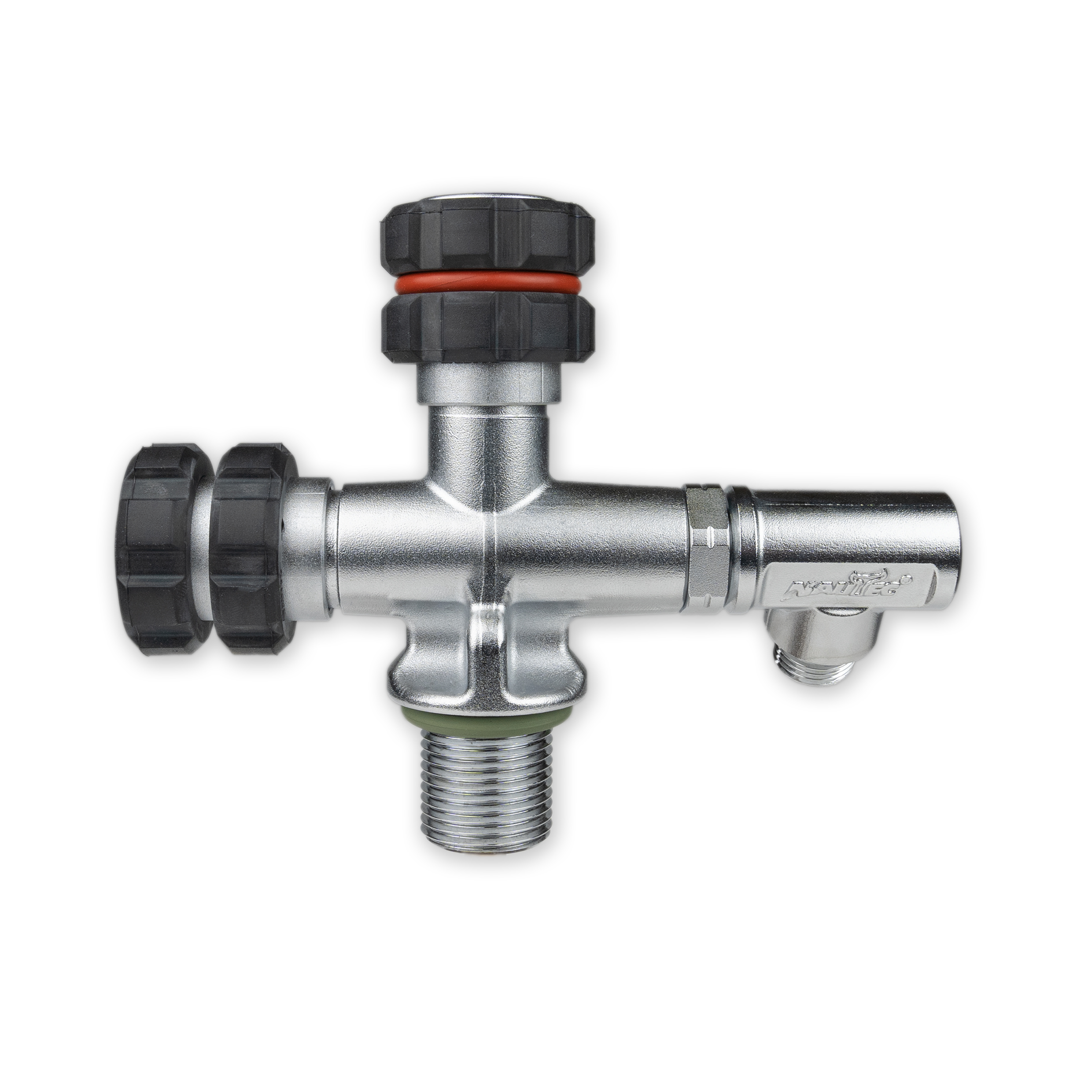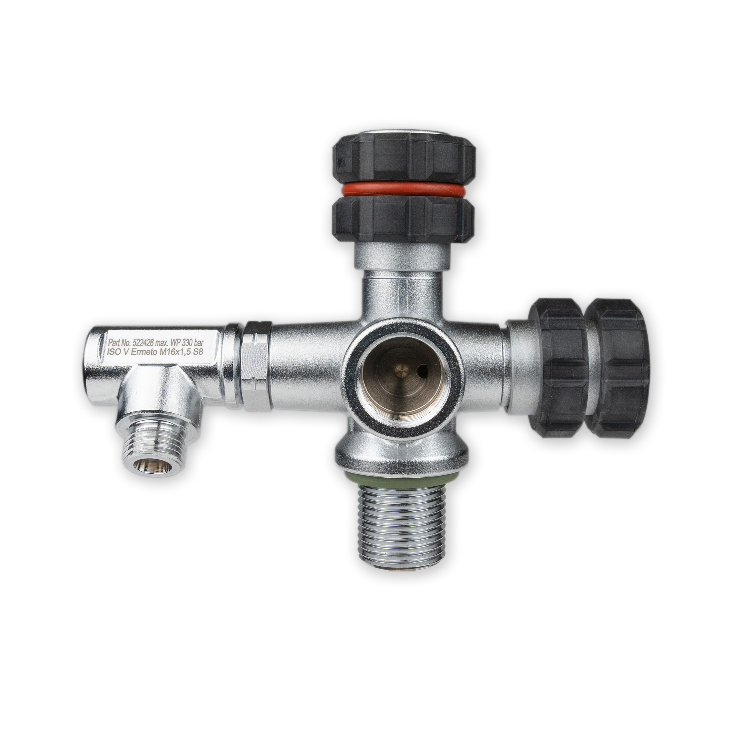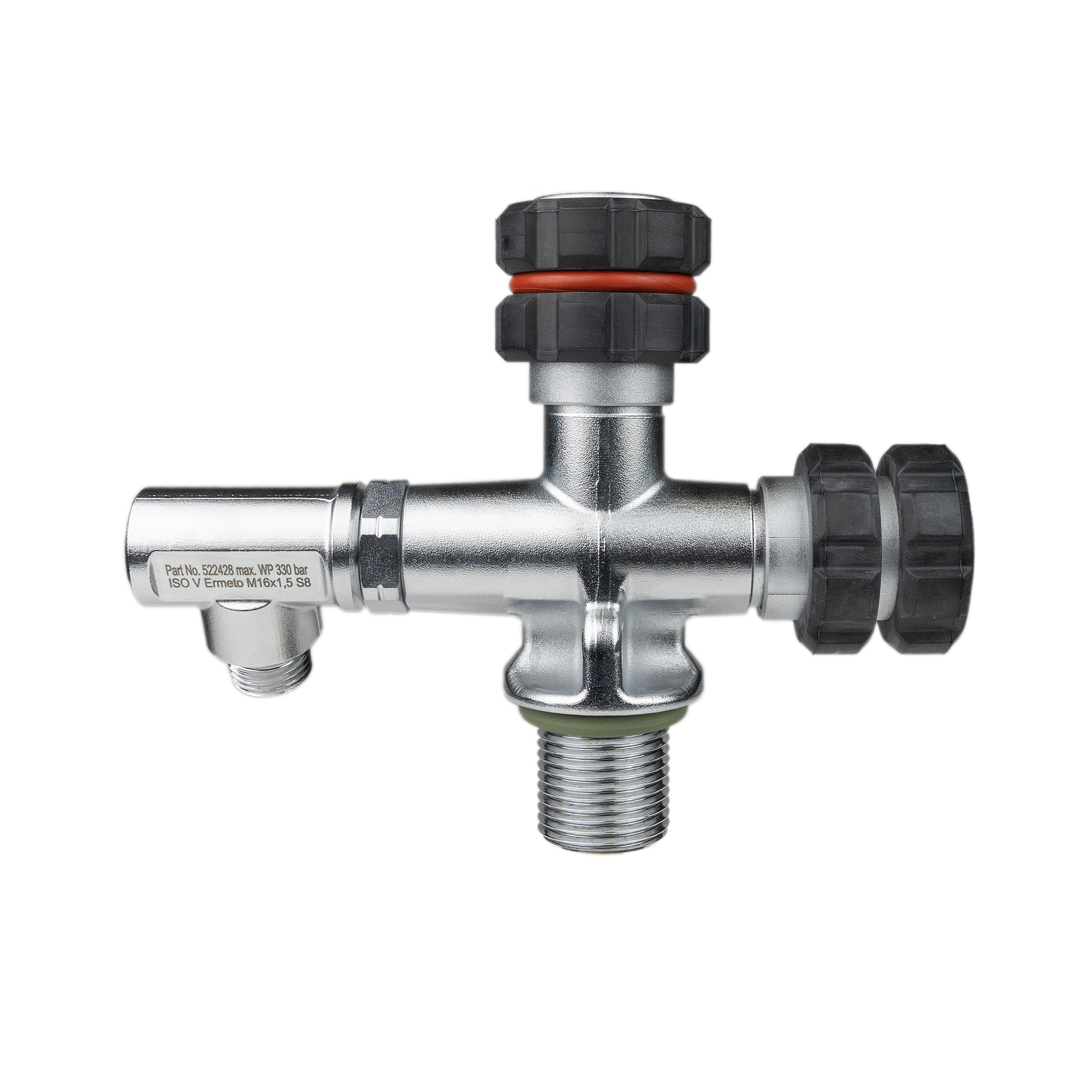 After two years of development work, we are very proud to present our EXPLORER Manifolds. The set is available in 232 & 300 Bar versions and 3/4” NPS and M25 versions. Versions sold in North America are provided with a burst assembly, in accordance with CGA V4.1